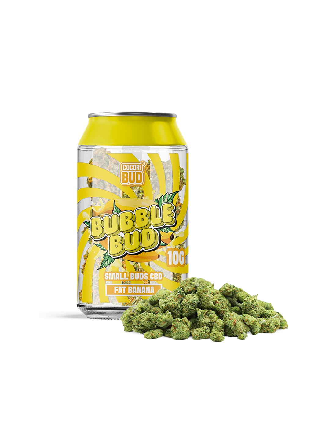 Le Bubble Bud Fat Banana de Cocoribud est présenté dans une canette hermétique contenant 10 g de Small Buds CBD. Avec son arôme exotique et sucré rappelant la banane mûre, il offre une expérience fruitée et gourmande. Cette variété procure une détente douce sans effet psychotrope, idéale pour chiller en soirée. Son design ludique et son format pratique en font un produit parfait pour la distribution en bureau de tabac, tout en garantissant une fraîcheur optimale.